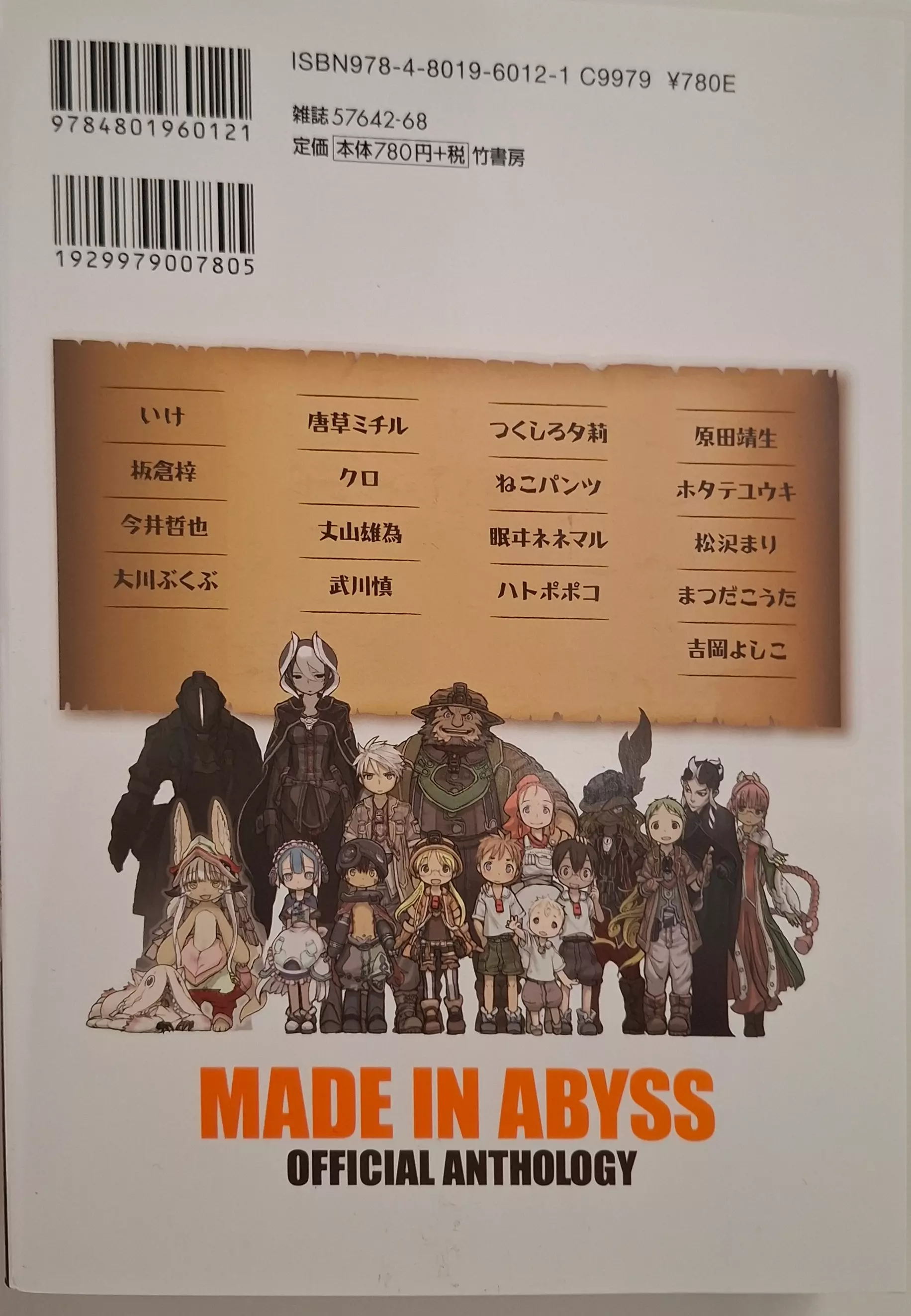 Edizione giapponese. volume 1 di made in abyss official anthology, una raccolta di storie brevi basate sulla serie manga scritta e illustrata da akihito tsukushi. i contributi di questa serie non sono fatti da tsukushi, ma esplorano il mondo creato da questo autore. questo manga è la storia di riko, una ragazza orfana che vive nella città di orth. molto vicino a questo luogo, c’è un buco gigante conosciuto come l’abisso, che collega la superficie della terra con il suo centro. in questo buco, ci sono manufatti di un’antica civiltà che i cave raider cercano di trovare. l’obiettivo di riko sarà quello di essere la migliore cave raider come lo era stata sua madre in passato.